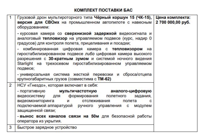 ОСНОВНЫЕ ХАРАКТЕРИСТИКИ ЧЁРНЫЙ КОРШУН 15 (ЧК-15):